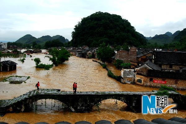 這是5月14日拍攝的發(fā)生洪澇災(zāi)害的湖南省江永縣歷史名村上甘棠村。當(dāng)日凌晨,湖南省永州市江永縣普降暴雨,暴雨引發(fā)的洪水造成江永縣千年古村上甘棠村發(fā)生洪澇災(zāi)害,部分村民被洪水圍困。當(dāng)?shù)毓裁窬、消防官兵和預(yù)備役民兵迅速行動(dòng),把洪水圍困的村民轉(zhuǎn)移到安全地帶。上甘棠村是具有湘南建筑特色的歷史名村。新華社發(fā)(黃海 攝)