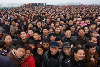 河南省是第一人口大省,據(jù)河南省人口和計劃生育委員會測算,河南的第1億個小公民將在2010年7月7日中午至7月8日凌晨誕生。實行計劃生育政策后,這個數(shù)字的到來已經(jīng)整整推遲了13年。圖為河南省寶豐縣的馬街書會上趕會的群眾。新華社記者王頌攝