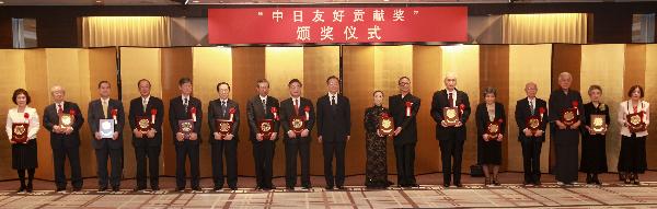 出席晚宴前,溫家寶會見了日本民間友好團體和友好人士代表并向他們頒獎,表彰他們?yōu)榇龠M中日友好事業(yè)作出的重要貢獻,希望他們?yōu)橥苿又腥贞P系發(fā)展繼續(xù)發(fā)揮積極作用。(記者明金維 李忠發(fā))
