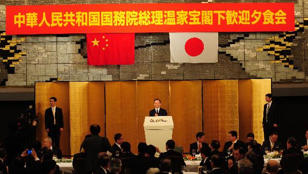 5月30日晚,中國國務院總理溫家寶在東京出席日中友好七團體和僑界四團體聯(lián)合舉行的晚宴并講話。 新華社記者 季春鵬 攝