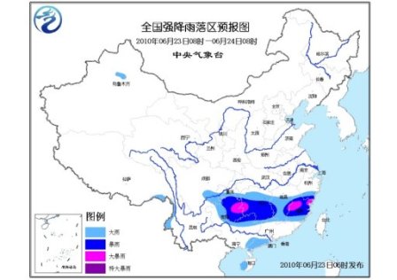 中央氣象臺今日06時繼續(xù)發(fā)布暴雨藍色預警:預計6月23日08時到6月24日08時,四川盆地南部、重慶南部、貴州中東部、湖南大部、江西中南部、浙江南部、福建大部、廣西北部和東南部等地有大到暴雨,局地有大暴雨;上述部分地區(qū)并伴有短時雷雨大風等強對流天氣。另外,新疆天山北麓、西藏東南部、云南西部、廣東西南部和西北部、海南西部等地的局部地區(qū)有大雨。