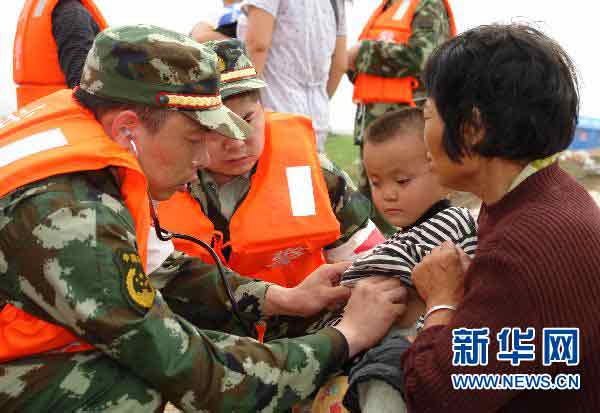 6月22日,武警醫(yī)療隊員在撫州臨川市唱凱鎮(zhèn)救治受傷的群眾。 6月24日開始,江西將再次出現(xiàn)強降雨。為確保群眾生命安全,防止群眾反復受災,22日下午開始,江西省加大撫河唱凱堤決堤災區(qū)群眾轉(zhuǎn)移力度,眾多原來在自家二三層樓房自我安置的群眾,也將及時進行轉(zhuǎn)移到戶外安全地帶。目前,江西已經(jīng)加大了人力和運輸工具的投入力度。新華社記者周科攝