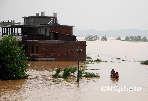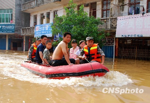 6月23日,南京軍區(qū)戰(zhàn)士繼續(xù)奮戰(zhàn),救助災(zāi)區(qū)群眾。江西第二大河撫河21日決堤,嚴(yán)重威脅下游5個(gè)鄉(xiāng)鎮(zhèn)14.5萬人口的安全,南京軍區(qū)戰(zhàn)士連續(xù)奮戰(zhàn)解救受困群眾。 中新社發(fā) 何柳斌 攝