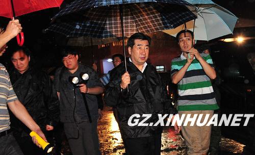 2010年6月29日凌晨,在貴州省關(guān)嶺縣崗烏鎮(zhèn)大寨村山體滑坡災(zāi)害現(xiàn)場(chǎng),中共中央政治局委員、國(guó)務(wù)院副總理回良玉冒雨指導(dǎo)抗災(zāi)工作。新華社記者 楊楹攝