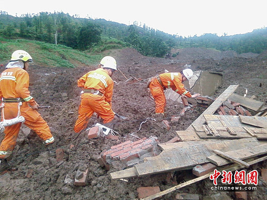 6月28日14時30分左右,貴州省關(guān)嶺縣崗烏鎮(zhèn)大寨村因連續(xù)強降雨引發(fā)山體滑坡,造成該村兩個村民組107人被困或被掩埋。據(jù)中央電視臺最新消息,經(jīng)過幾個小時的緊張救援,之前疑似發(fā)現(xiàn)生命跡象的吊腳樓已經(jīng)被救援官兵打開,里面全是淤泥,并沒有找到兩名7歲和9歲的男孩。