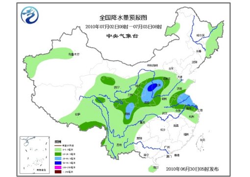 7月1日08時時至2日08時,西藏東部、青海大部、川西高原有小到中雨或雨夾雪;新疆南疆盆地西部和天山山區(qū)、西北地區(qū)中東部、東北大部、華北大部、黃淮、江淮、江漢大部、江南東北部、海南以及西南大部有小到中雨或陣雨,其中,青海東南部、甘肅東南部、山東西南部、河南東部、蘇皖北部等地有大雨,局地有暴雨;上述部分地區(qū)并伴有短時雷雨大風(fēng)等強對流天氣。新疆大部、甘肅西部、內(nèi)蒙古大部、東北大部等地有4~6級風(fēng),新疆南疆盆地的部分地區(qū)有揚沙或浮塵天氣。黃海南部海域?qū)⒂衅巷L(fēng)4~5級增加到5~6級、陣風(fēng)7級;東海大部海域、臺灣海峽、臺灣以東洋面將有4~6級西南風(fēng);北部灣、南海大部海域?qū)⒂?~6級偏南風(fēng)。