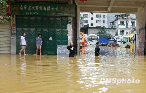 6月28日,廣西鳳山縣消防官兵幫助群眾轉(zhuǎn)移財產(chǎn)。當(dāng)日,鳳山縣遭受今年以來最強的暴雨襲擊,全縣9個鄉(xiāng)鎮(zhèn)普降大到暴雨,最大降雨量為中亭鄉(xiāng)204毫米?h城區(qū)部分街道出現(xiàn)內(nèi)澇,全縣受災(zāi)人口達5.8943萬人。 中新社發(fā) 周恩革 攝