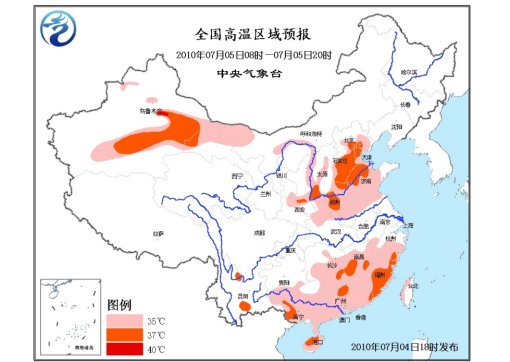 據(jù)中廣網(wǎng)報道,中央氣象臺首席預(yù)報員孫軍介紹說,5日高溫天氣仍然持續(xù)。南方地區(qū)的范圍稍微縮小一些。在江南的東南部、華南還會有35℃-37℃。華北地區(qū)的高溫范圍和強(qiáng)度會有所擴(kuò)大,在京津、河北、山西南部、山東、河南這些地區(qū)會有35℃-37℃,局部地區(qū)會有38℃到40℃的高溫天氣。