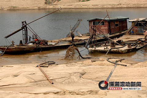 望城縣水利局局長王彬介紹,非法采砂最大的危害是破壞航道,并嚴(yán)重影響著湘江流域飲水安全。同時,其直接危害就是造成河床嚴(yán)重下切,影響防洪安全。有的在防洪大堤隨意開辟下河通道,將河灘變成轉(zhuǎn)運(yùn)碼頭,有的在河灘上搭建工棚,嚴(yán)重影響行洪,損壞湘江防洪大堤,影響防汛通道的暢通。