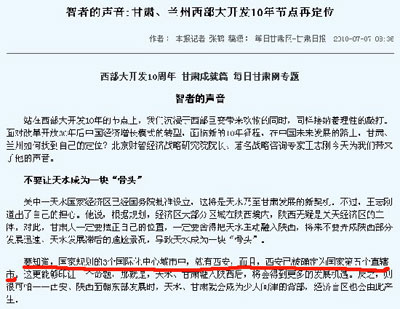 7月7日,《甘肅日報》撰文稱著名戰(zhàn)略咨詢專家王志綱在蘭洽會上透露“西安已被確定為國家第五個直轄市”,記者今天早上與《甘肅日報》取得聯(lián)系,當(dāng)事記者稱,直轄市之說系自己從網(wǎng)絡(luò)上搜索到的,并沒有確切消息。