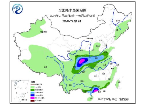 22-25日,西北地區(qū)東南部、華北南部、黃淮西部、四川盆地東部、漢水上游等地有40-80毫米降雨,部分地區(qū)降雨量有100-150毫米,局部有200毫米左右。