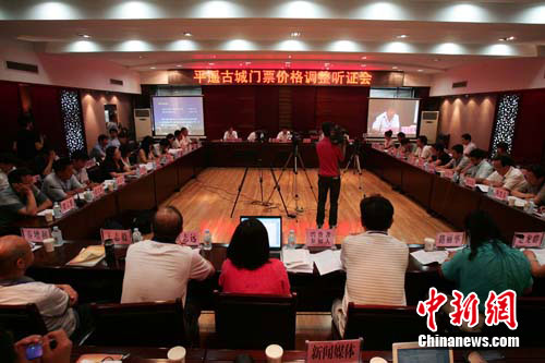 19日上午,山西平遙古城門(mén)票價(jià)格調(diào)整聽(tīng)證會(huì)在平遙縣黨政大樓六層會(huì)議室如期舉行 。