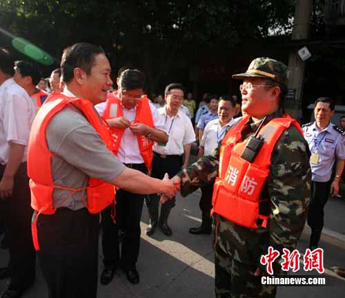 民政部副部長羅平飛抗洪一線看望消防、武警官兵。劉忠俊 攝