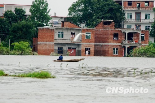 自7月8日21時(shí)開始,江西樂(lè)平市普降大到暴雨,平均降雨量160毫米,局部地區(qū)達(dá)250毫米,強(qiáng)降雨導(dǎo)致該市浯口鎮(zhèn)產(chǎn)生了嚴(yán)重內(nèi)澇災(zāi)害,相鄰的程家墩、楊溪、桃園三村處在一片汪洋之中,成為了“孤島”。 中新社發(fā) 朱定文 攝
