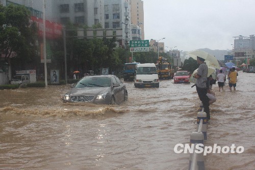 7月26日下午,浙江溫嶺溫嶺汽車站前一片汪洋。據(jù)浙江溫嶺市氣象臺(tái)提供數(shù)據(jù),7月25日晚8時(shí)至26日下午5時(shí),溫嶺市降雨270毫米,是1960年有記錄以來(lái)降雨量最大的一次。溫嶺市區(qū)一片汪洋,人民路、萬(wàn)壽路、中華路、三星大道等城市主要道路被洪水所淹。 中新社發(fā) 黃曉慧 攝