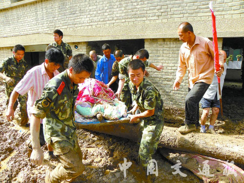 8日6時(shí)05分,接到救援電話后,武警交通六支隊(duì)舟曲項(xiàng)目部主任程五勝立即率領(lǐng)第一梯隊(duì)26名官兵,攜帶8臺(套)專業(yè)技術(shù)機(jī)械,于6時(shí)30分抵達(dá)救援現(xiàn)場。武警交通指揮部啟動(dòng)應(yīng)急預(yù)案,命令所屬一支隊(duì)、六支隊(duì)、第二工程處,從甘肅天水、定西、龍南、臨夏等地緊急抽調(diào)專業(yè)救援人員、大型機(jī)械,火速趕赴救災(zāi)一線,指揮部副主任劉根水于8日18時(shí)趕往一線。