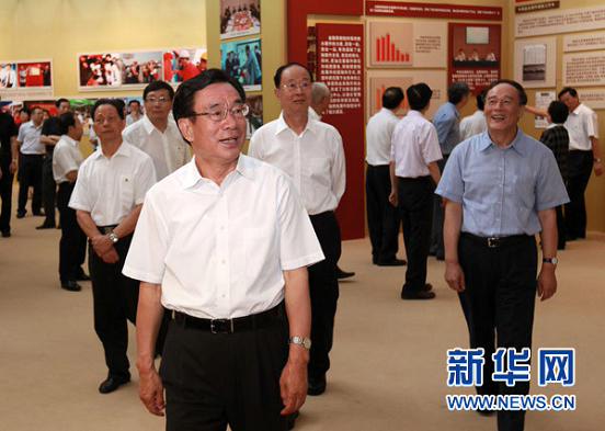 8月11日,中共中央政治局常委、中央紀(jì)委書記賀國強來到北京展覽館,參觀正在這里舉行的“金融系統(tǒng)反腐倡廉建設(shè)展”。新華社記者 龐興雷 攝