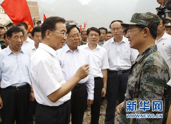 8月9日,中共中央政治局常委、國務(wù)院總理溫家寶繼續(xù)在甘肅舟曲縣特大山洪泥石流災(zāi)區(qū)察看災(zāi)情,指導(dǎo)抗洪搶險救災(zāi)工作。 新華社記者 李學(xué)仁攝(資料圖)