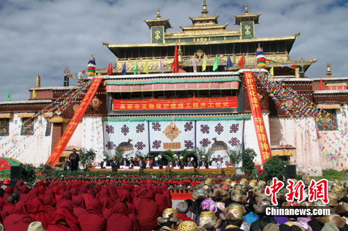素有“西藏第一座寺廟”美稱(chēng)的桑耶寺15日在大殿廣場(chǎng)舉行桑耶寺保護(hù)維修工程開(kāi)工儀式。有關(guān)方面在儀式上表示,中國(guó)政府計(jì)劃投資人民幣7697萬(wàn)元對(duì)桑耶寺康松?盗、展佛臺(tái)、白哈王宮殿等12處建筑進(jìn)行維修。