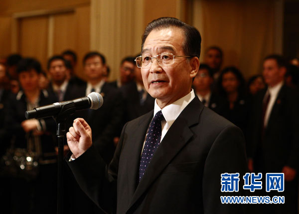 中國國務(wù)院總理溫家寶當(dāng)?shù)貢r間9月21日晚在紐約會見旅美華僑華人、中資機(jī)構(gòu)及留學(xué)生代表時說,釣魚島是中國的神圣領(lǐng)土。日方最近在釣魚島海域抓扣中國漁民和漁船,至今不釋放中方船長,這是完全非法的、無理的,已經(jīng)對中方船長及其家人造成嚴(yán)重傷害,并激起海內(nèi)外全體中國人的憤怒。新華社記者 姚大偉攝