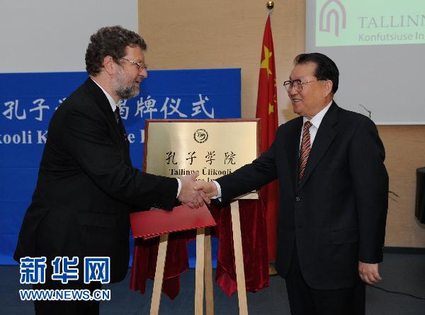 當?shù)貢r間22日下午,中共中央政治局常委李長春出席了塔林大學孔子學院揭牌儀式。