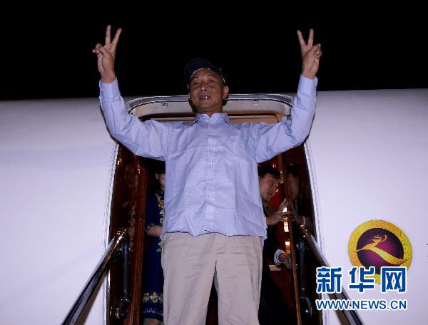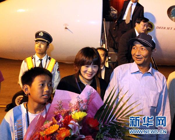 9月25日1時12分,由外交部和農(nóng)業(yè)部組成的聯(lián)合工作組已接護中國漁船船長詹其雄,乘坐中國政府包機啟程回國。新華社記者陳建力攝