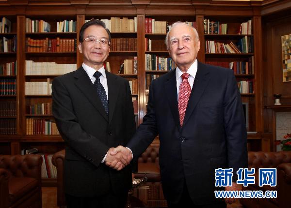 溫家寶向帕普利亞斯總統(tǒng)轉(zhuǎn)達了胡錦濤主席的親切問候。溫家寶說,我是帶著中國人民對希臘人民的友誼和真誠合作的愿望而來,親眼看見了希臘政府和人民為應(yīng)對國際金融危機的挑戰(zhàn)所作的不懈努力,相信希臘一定能克服暫時的困難,實現(xiàn)新的發(fā)展。