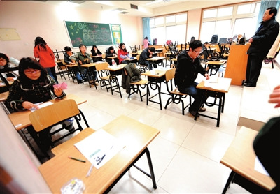 2009年11月29日,考生入考場(chǎng)準(zhǔn)備參加公務(wù)員考試(資料圖片)。本報(bào)記者 王苡萱 攝