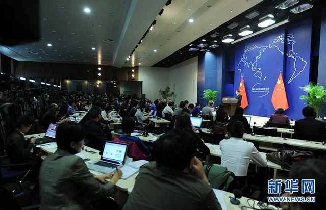 資料圖片:10月12日,記者在外交部新發(fā)布廳內(nèi)參加新聞發(fā)布會。新華社記者 金良快 攝