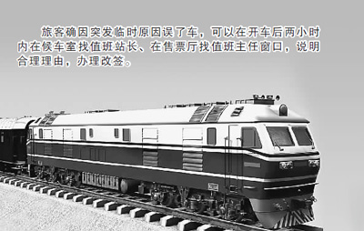 因突發(fā)臨時(shí)原因誤車,可在開車后兩小時(shí)內(nèi)找值班站長(zhǎng)改簽