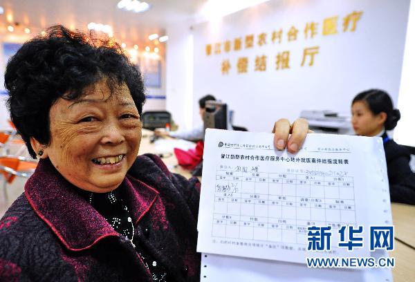 晉江市青陽(yáng)街道居民林淑娥老人在當(dāng)?shù)亍靶罗r(nóng)合”醫(yī)療服務(wù)中心辦理結(jié)報(bào)手續(xù)(12月2日攝)。今年以來(lái),她只繳納30元的基金,卻報(bào)回了2000多元醫(yī)藥費(fèi)。福建省晉江市從2006年起,在全省率先實(shí)行城鄉(xiāng)一體化基本醫(yī)療保險(xiǎn)制度,凡未參加城鎮(zhèn)職工基本醫(yī)療保險(xiǎn)和未享受公費(fèi)醫(yī)療的社區(qū)居民均被納入“新型農(nóng)村合作醫(yī)療”范圍。 新華社記者 張國(guó)俊 攝