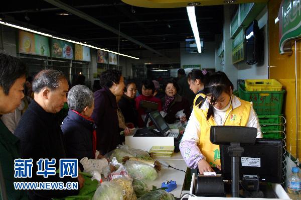 資料圖:11月30日,眾多市民在成都生鮮超市購買農(nóng)副產(chǎn)品。新華社記者 劉海 攝