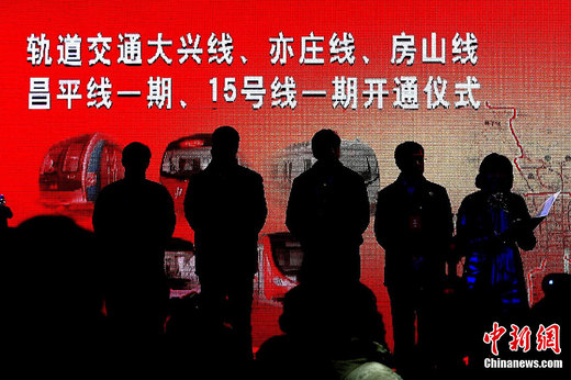 12月30日,北京5條地鐵新線開門迎接乘客。這5條地鐵線路包括房山線、昌平線一期、15號(hào)線一期、亦莊線和大興線,總長度達(dá)108公里。上述地鐵線路全部開通后,北京市軌道交通運(yùn)營里程將首次突破300公里。中新社記者 富田 攝