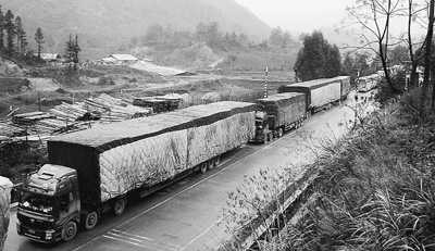 1月2日,眾多車輛滯留在210國道廣西南丹縣六寨段。符龍強攝(新華社發(fā))