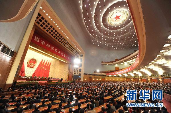 中共中央、國務(wù)院14日上午在北京隆重舉行國家科學(xué)技術(shù)獎勵大會,黨和國家領(lǐng)導(dǎo)人胡錦濤、溫家寶、李長春、習(xí)近平、李克強出席大會。
