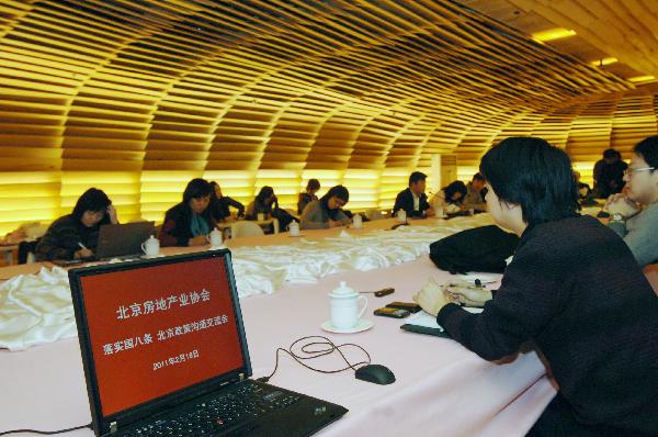 2月16日,北京樓市調(diào)控新政出臺強(qiáng)化“限購”等措施。這是2月16日拍攝的新聞發(fā)布會現(xiàn)場。新華社記者趙琬微攝