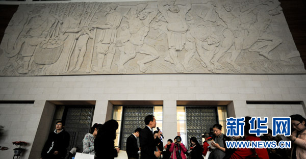 這是國博西大廳的浮雕“愚公移山”(2月16日攝)。經(jīng)過3年多改擴(kuò)建的國家博物館將于4月1日重新開館迎客,屆時(shí),國博將舉辦大型主題展覽《啟蒙的藝術(shù)》。 新華社記者 王建華 攝