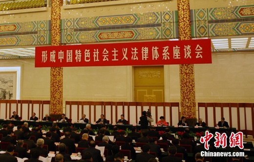 1月24日,全國人大常委會委員長吳邦國在北京宣布,一個立足中國國情和實際、適應(yīng)改革開放和社會主義現(xiàn)代化建設(shè)需要、集中體現(xiàn)黨和人民意志的,以憲法為統(tǒng)帥,以憲法相關(guān)法、民法、商法等多個法律部門的法律為主干,由法律、行政法規(guī)、地方性法規(guī)等多個層次的法律規(guī)范構(gòu)成的中國特色社會主義法律體系已經(jīng)形成。