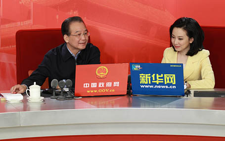 27日上午,中共中央政治局常委、國(guó)務(wù)院總理溫家寶再次專程來到中國(guó)政府網(wǎng)和新華網(wǎng)訪談室,接受中國(guó)政府網(wǎng)和新華網(wǎng)聯(lián)合專訪,同海內(nèi)外網(wǎng)友進(jìn)行在線交流。