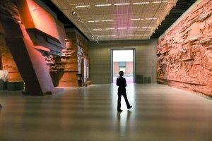展示陷入半殖民地半封建社會的中國各階層人民奮起抗爭,為實現(xiàn)民族復興進行的探索,各族人民爭取民族獨立人民解放、國家富強人民幸福的歷程?拐鹁葹、舉辦奧運會、紀念改革開放30周年及應對金融危機等,都在展覽中有所表現(xiàn)。