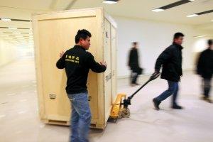 雖然只有30個木箱,但為了文物的安全,整個搬運過程進展較慢。于成龍介紹,文物會直接搬到3層展廳,并在今天開箱、檢查、交驗。