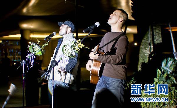 農(nóng)民工歌手組合“旭日陽剛”在寧波參加一個為農(nóng)民工子弟學校舉辦的慈善義演晚會(2010年11月28日攝)。從“芙蓉姐姐”到“后舍男生”,從“西單女孩”到“旭日陽剛”,一個又一個來自地下室、出租屋、地鐵站、酒吧迪廳的草根人物,通過網(wǎng)絡一夜走紅后,成為現(xiàn)實生活中的“明星”。但是,這些從網(wǎng)絡走出的草根“明星”由于都存在這樣或那樣的先天不足,很多都已成為浮云或正在走向浮云,在現(xiàn)實中很囧。一些參加全國兩會的代表委員指出,“網(wǎng)絡紅人”現(xiàn)象往往有非理性的一面,除了某些惡俗的“紅人”外,諸如“旭日陽剛”這樣的草根人物通過網(wǎng)絡平臺走紅后能否站穩(wěn)、站久,尚需練好“內功”。新華社發(fā)