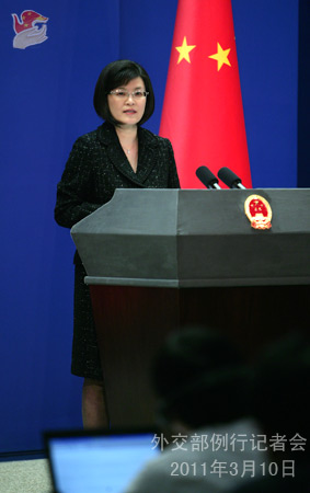 2011年3月10日,外交部發(fā)言人姜瑜主持例行記者會(huì)。