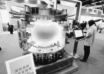 近日,在北京“十一五”國家重大科技成就展上,觀眾參觀國際熱核聚變裝置模型展臺。阿青攝(人民圖片)