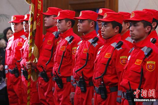資料圖:2011年3月13日,應(yīng)日本政府請(qǐng)求,中國(guó)政府派遣中國(guó)國(guó)際救援隊(duì)一行15人,乘坐中國(guó)國(guó)際航空公司包機(jī)前往日本,參加救援行動(dòng)。中新社發(fā) 富田 攝