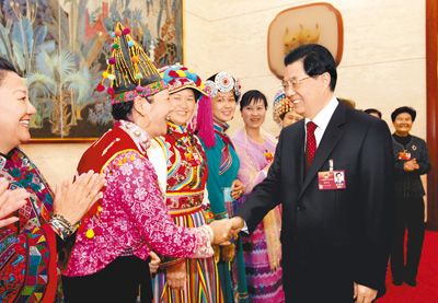 胡錦濤代表黨中央,向出席全國(guó)兩會(huì)的女代表、女委員和女工作人員,向全國(guó)各族各界婦女同胞,致以節(jié)日的問(wèn)候和誠(chéng)摯的祝福