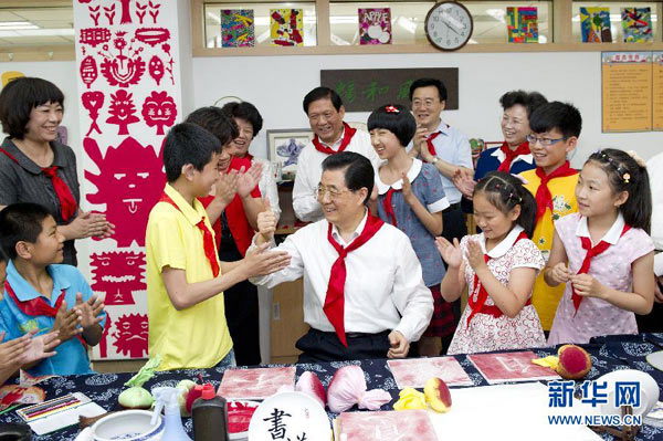 “六一”國際兒童節(jié)到來之際,中共中央總書記、國家主席、中央軍委主席胡錦濤5月31日上午前往北京市東城區(qū)少年宮考察,親切看望在這里參加活動的小朋友們,代表黨中央,向全國各族少年兒童表示節(jié)日的祝賀,向全國廣大少兒工作者表示崇高的敬意。