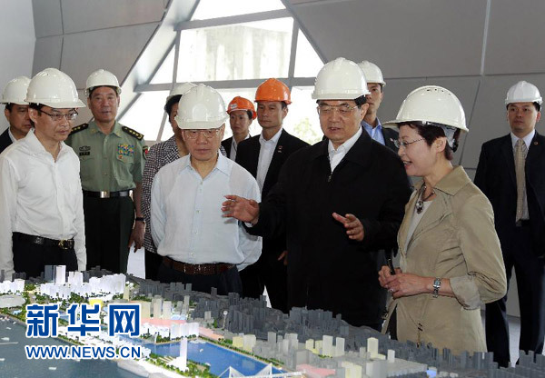 6月30日,國家主席胡錦濤在香港視察啟德發(fā)展計劃。這是胡錦濤主席在聽取關(guān)于項目建設(shè)的介紹。 新華社記者 鞠鵬 攝