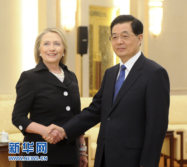 9月5日,中國(guó)國(guó)家主席胡錦濤在北京人民大會(huì)堂會(huì)見美國(guó)國(guó)務(wù)卿希拉里·克林頓。 新華社記者 姚大偉 攝