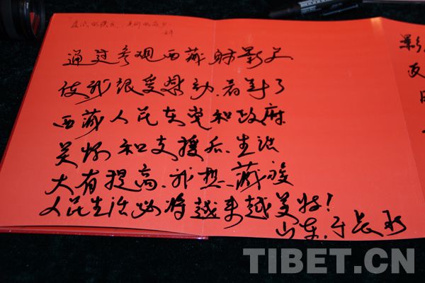 臺(tái)北的一位林先生看完攝影展后揮筆寫(xiě)下“西藏好地方!”幾個(gè)大字作為留念。